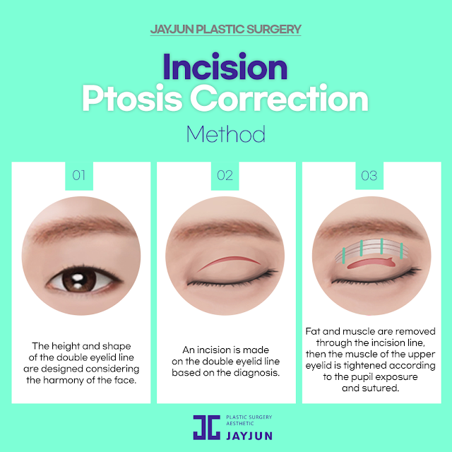 On the other hand, incisional eyelid correction is performed in cases where the eyelids have a significant amount of fat or severe drooping. This shows high improvement effects in cases of severe ptosis, where the levator muscle's strength is weak, causing the upper eyelid to droop and the eyelid gap to narrow.